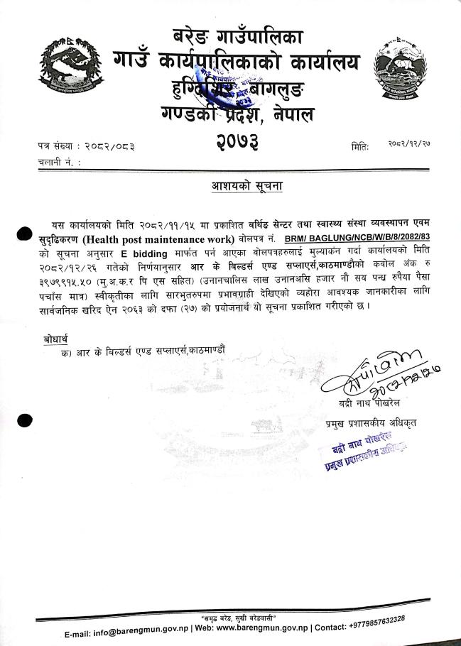 आशयको सूचना (वर्थिङ सेन्टर)