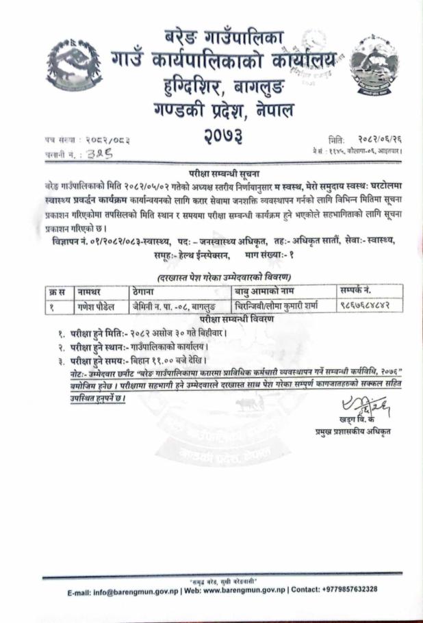 सेवा करार लिने सम्बन्धी सूचना ( जनस्वास्थ्य अधिकृत )