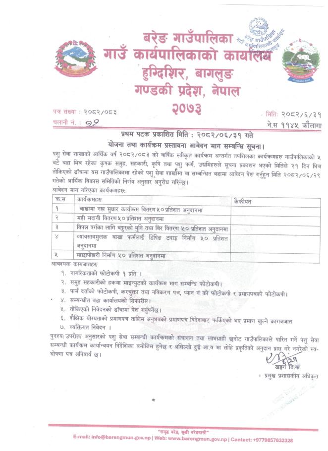 योजना तथा कार्यक्रम प्रस्तावना आवेदन माग सम्बन्धी सूचना(पशु सेवा)