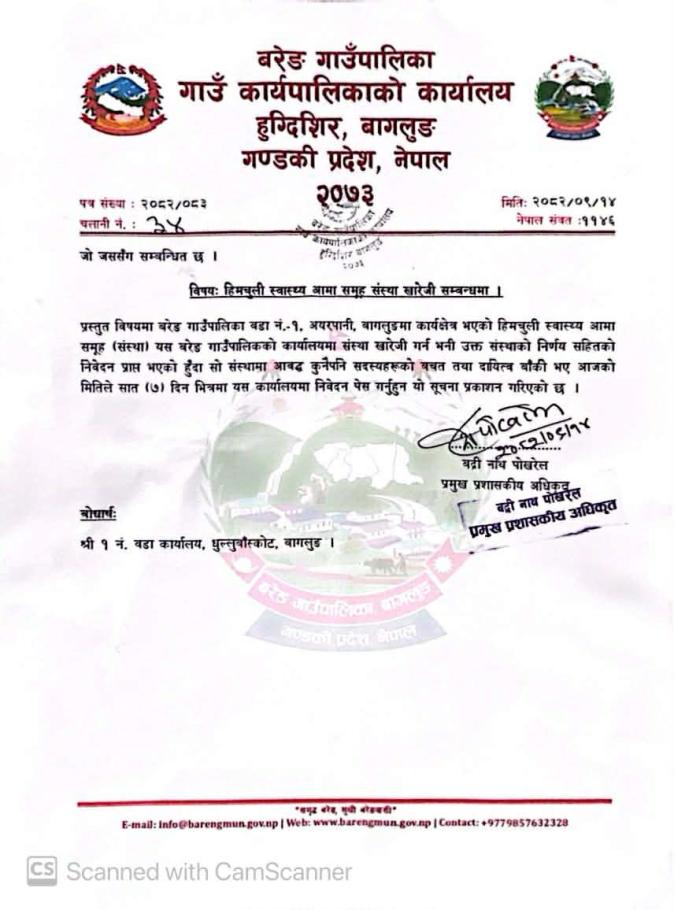 हिमचुली स्वास्थ्य आमा समूह खारेजी सम्बन्धी सूचना