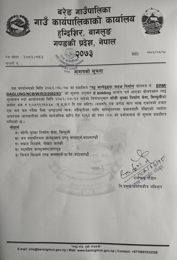 » आशयको सूचना (घट्ट मान्द्रेढुङ्गा मोटरबाटो)