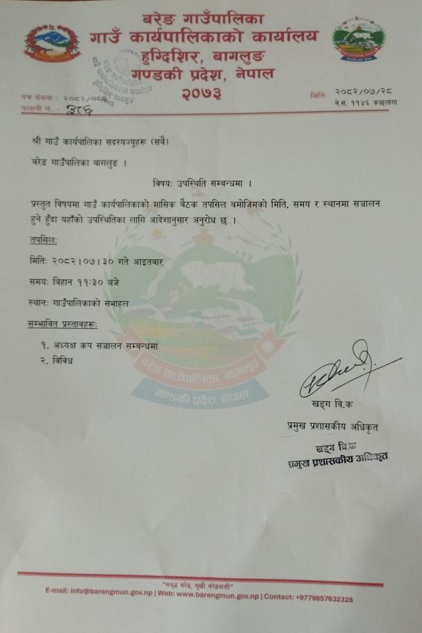 बरेङ गाउँपालिका, बरेङ गाउँ कार्यपालिकाको कार्यालय