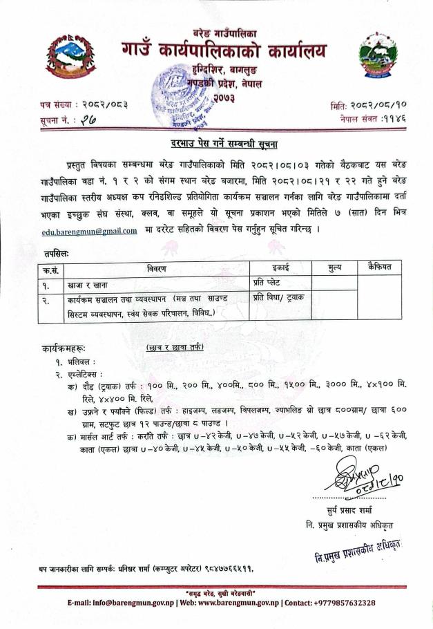 दरभाउ पेस गर्ने सम्बन्धी सूचना