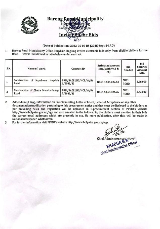 सार्वजनिक खरिद/बोलपत्र सूचना