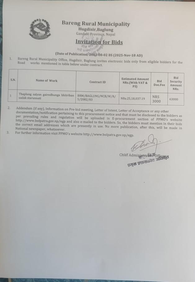 सार्वजनिक खरिद/बोलपत्र सूचना