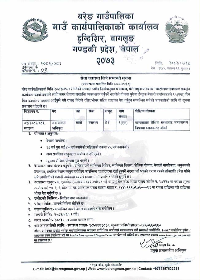 बरेङ गाउँपालिका, बरेङ गाउँ कार्यपालिकाको कार्यालय
