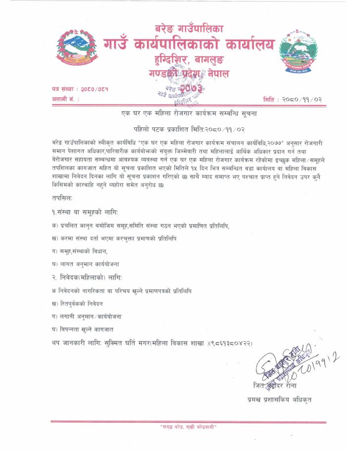 बरेङ गाउँपालिका, बरेङ गाउँ कार्यपालिकाको कार्यालय